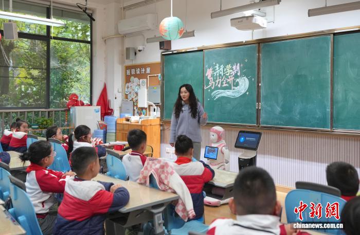 3月2日,4川成城市中小教秋季教期正式启教止课第1天。成皆7中始中隶属小教呆板人“7仔”正在启教仪式上战同砚互动并为该校2年级4班的同砚上了“启教第1课”。中新社记者 安源 摄